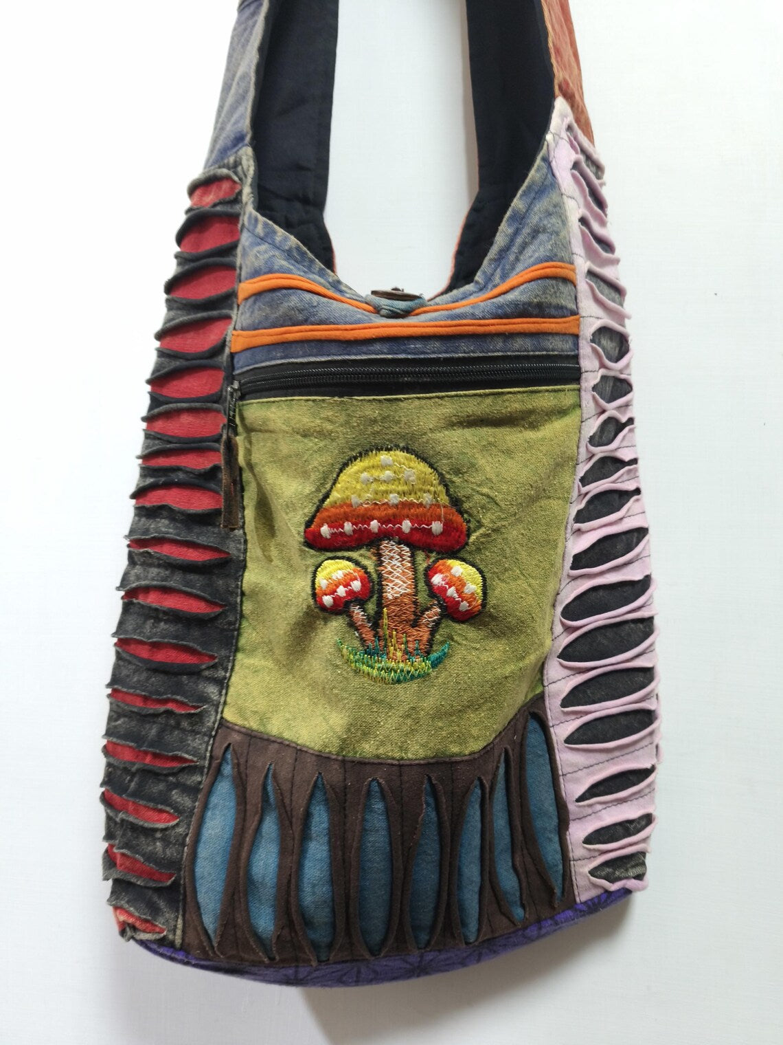 ✔ Main zipped compartment + wooden button closure