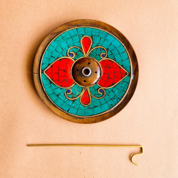 A minimalist wooden incense holder handcrafted by Nepali artisans, designed for multiple incense types. Its angled hole catches ash neatly, while the compact size fits any sacred space. Natural wood variations ensure each piece is unique.