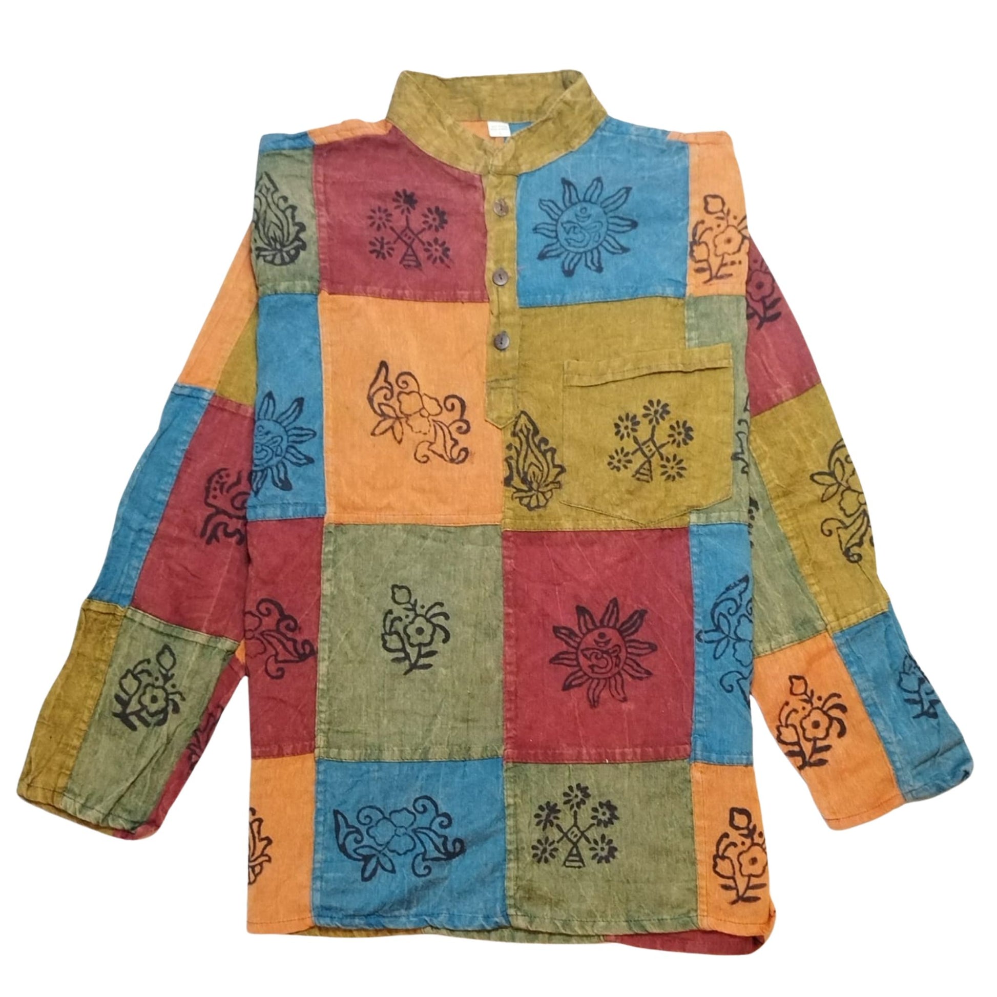 Bold, expressive, and handcrafted with soul — this full-sleeve multicolor shirt is a celebration of patchwork artistry and Bohemian spirit. Made from breathable cotton and adorned with symbolic prints, it’s designed for those who wear their individuality with pride.